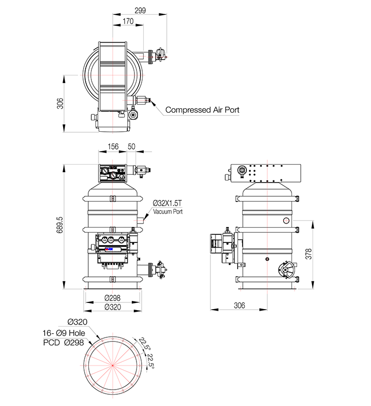 VTC100 series vacuum conveyor w/Central exhaust port |