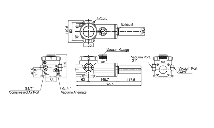 | VTCL3134-2 | Turtle mega vacuum pump, “L” type 3-stage, 4-cartridge, Polyester filter, G1 & G3/4″ vac ports |