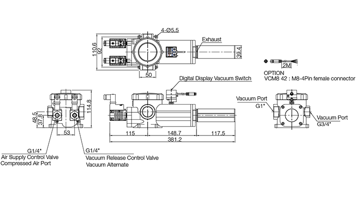 | VTCL3134-2 with optional parts: 에어공급밸브, 진공파기밸브, 디지털 진공 스위치 부착형 |